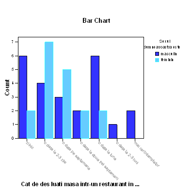 Nu exista diferente semnificative in functie de sexul respondentului la nivelul populatiei brasovene in ceea ce priveste dorinta de a lua masa intr-un restaurant fast-food si a cumpara un anumit tip de mancare .