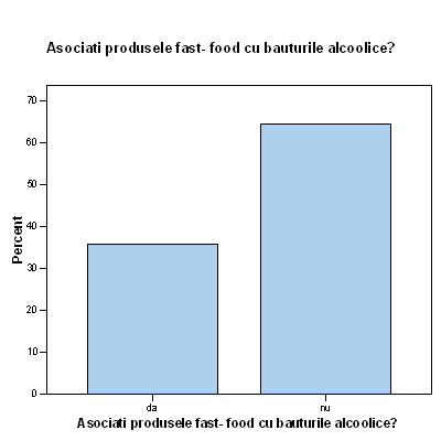 15% dintre cei chestionati au declarat ca asociaza produsele fast- food cu bauturile alecoolice, in timp ce 27% au declarat ca nu le asociaza.