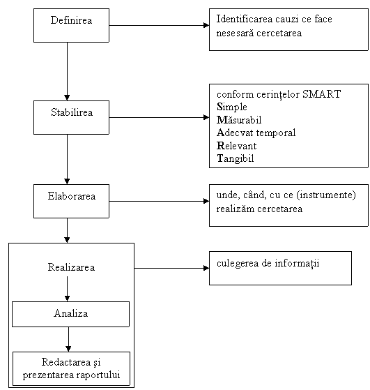 Cercetarea de marketing este un procedeu foarte complex care pentru a fi eficient trebuie sa urmareasca parcurgerea unor etape.