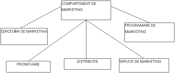 Experienta acumulata in diferite tari avansate, a aratat ca, existenta in cadrul firmei a unui compartiment specializat in probleme de marketing, constituie premisa esentiala a unor activitati benefice in domeniul valorificarii produselor si serviciilor. Lucrul cel mai important il constituie situarea acestui compartiment in organigrama firmei, diferentierea cat mai clara a sistemului sau de relatii - ierarhice, functionale, de cooperare - cu celelalte compartimente ale agentului economic.