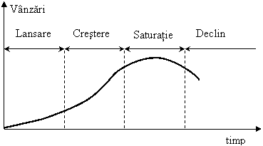 De-a lungul acestuia, volumul vanzarilor urmeaza, de regula, o curba de tipul celei din figura urmatoare: