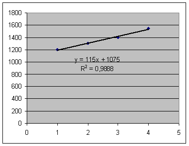 Putem considera la o analiza preliminara ca evolutia volumului de vanzari are loc dupa functia y=1.015+145t