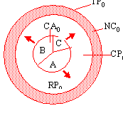 A, B, C - piata consumatorilor actuali pentru produsele concurentiale a, b, c.