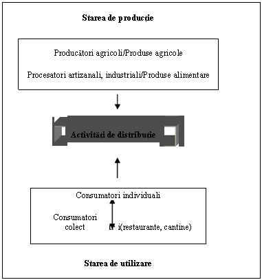 Distributia, care apartine sectorului tertiar, joaca un rol foarte important in filierele agroalimentare prin crearea de servicii, de noi locuri de munca si de valoare adaugata. Punerea produselor la dispozitia prestatorilor, intermediarilor si consumatorilor finali trebuie sa se faca la momentul, in forma, calitatea si cantitatea pe care acestia o doresc. In cadrul filierelor "miscarea" produselor agroalimentare de la un operator la altul, in urma tranzactiilor sau schimburilor de piata, presupune transferul titlului de proprietate, precum si o serie de alte fluxuri care fac posibila trecerea lor din faza de productie in faza de consum (figura 1).