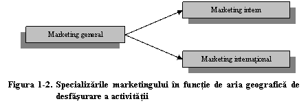 Un al treilea criteriu ce poate fi utilizat pentru identificarea domeniilor de specializare a marketingului este cel al ariei geografice de desfasurare a activitatii. Prin aplicarea acestui criteriu se desprind doua specializari: marketingul intern si marketingul international.