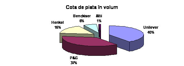 Astfel, concurenta de marca si cea la nivel de industrie sunt reprezentate in principal de trei firme: Unilever, Procter&Gamble si Benckiser. Univer este liderul pietei romanesti, fiind una dintre cele mai mari companii din lume in acest domeniu. El este prezent pe piata cu trei marci: Omo, Bona si Dero. Omo Intelligent, gama de detergenti premium este disponibila in doua variante: Omo pentru spalare manuala si cu masina de spalat neautomata (albastru), si Omo pentru spalare cu masina de spalat automata (verde). Omo Intelligent este destinat familiilor moderne, cu venituri medii si mari, care cauta un detergent performant ce poate raspunde cu succes oricaror exigente. Bona, comercializat de Unilever in segmentul de pret mediu a fost lider de piata in 1999, iar Dero, detergentul comercializat in segmentul economic l-a urmat indeaproape.