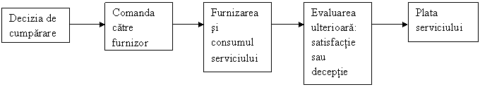 - al evaluarii serviciului (postcumparare): criteriile pe baza carora cumparatorul face evaluarea serviciului, motivele satisfactiei sau insatisfactiei sale.