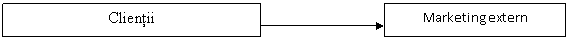 Marketingul extern: consta in activitati traditionale de marketing ce vizeaza comunicatia dintre firma si piata, stabilirea preturilor si distributia serviciilor. Are ca obiectiv crearea unei idntitati solide a firmei, cu scopul de a o distinge de firmele concurente de pe piata.