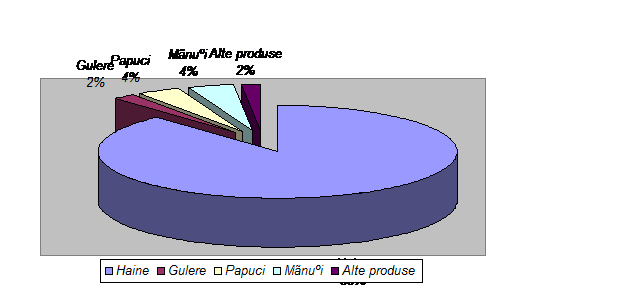 Asa cum se observa din graficut exterior ponderea cea mai mare din cadrul obiectului de activitate o detine prelucarea si comercializarea articolelor din blana naturala si artificiala 19,015 mil. lei