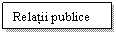 Activitatea de relatii publice e definita ca 'efortul planificat si sustinut de stabilire si mentinere a bunavointei si intelegerii reciproce intre organizatie si publicul sau: clienti, angajati, actionari, organisme comerciale, furnizori si societate in ansamblu. Managerii de PR au sarcina de a coordona toate activitatile care formeaza fata publica a firmei: organizeaza conferinte de presa, seminarii de instruire a personalului, diverse evenimente (dineuri anuale), solutioneaza reclamatiile si sesizarile, se ingrijeste de aspectul exterior al membrilor conducerii, se ocupa cu marketingul intern, stabilirea unei culturi organizationale orientate spre client fiind o atributie a sa.