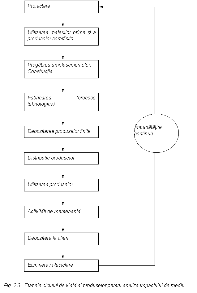 In fiecare dinte aceste etape se recomanda sa fie luate din considerare urmatoarele aspecte ecologice: impactul ambiental al deseurilor rezultate, poluarea si degradarea solului, contaminarea apei si a aerului, nivelul zgomotului, consumul de energie si resurse naturale, efetul asupra ecosistemelor. Analiza include si impactul ambalajului asupra mediului, in etapele mentionate.