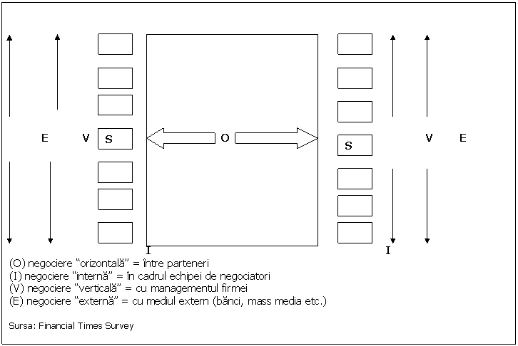 puterea relativa a firmelor (partilor) angajate in negocieri (marimea si performantele firmei, pozitia pe piata, imaginea in lumea de afaceri etc.);