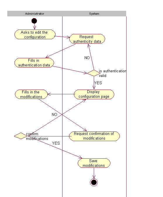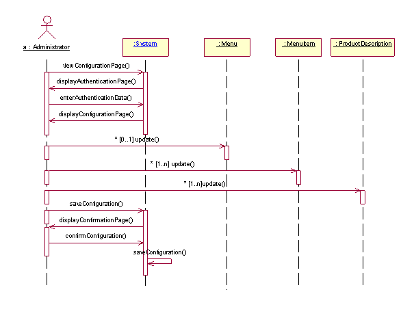The Administrator modifies/updates information regarding administrators, product categories and product details. Some checks are always being made: there must always be at least one administrator, product category names and product names have to be unique