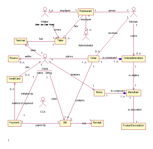 - the entire system is based on the MVC architectural pattern. The View is represented by all GUI classes. The Controller consists in following Manager classes: MenuManager, OrderManager, PaymentManager, ReviewManager, ConfigurationManager. The Model is represented by all other classes (except actors) and encapsulates a data access layer to the persistent storage mechanism (database).