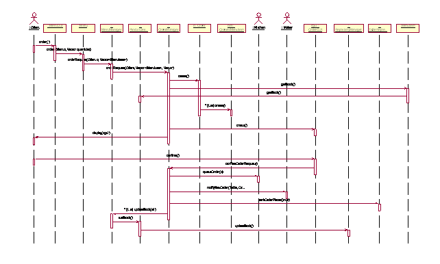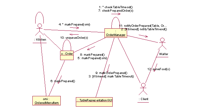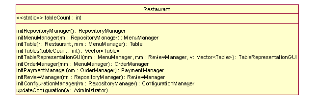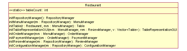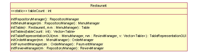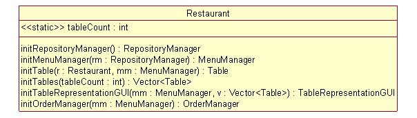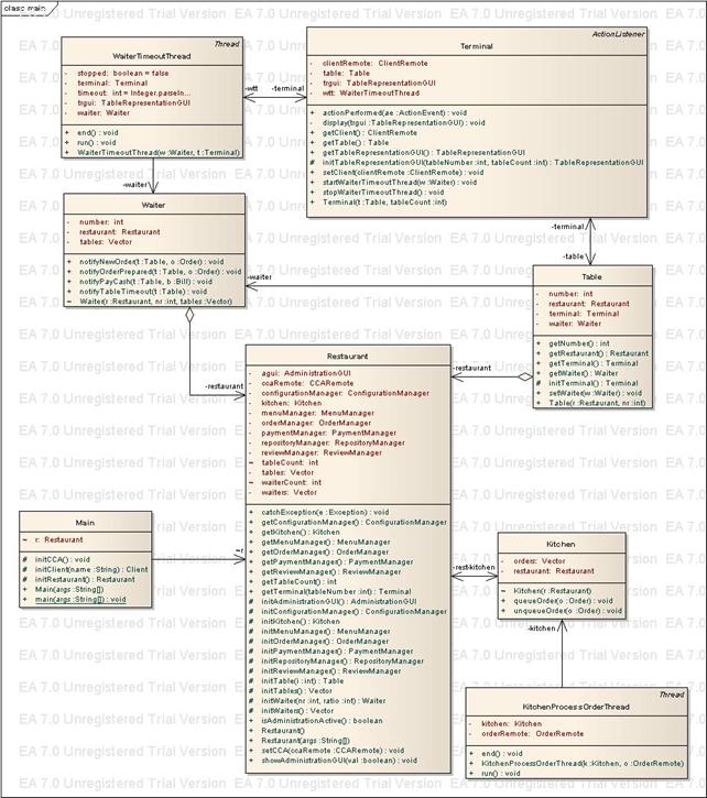 check on his table after a client placed an order. The Main class is responsible for initializing the entire system.