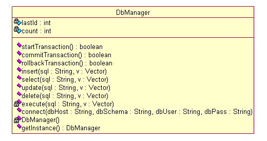- DbManager acts as a Faade that provides a simpler interface to the logic needed for executing SQL queries into the database