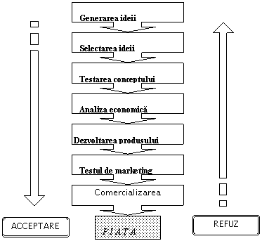 Testarea conceptului - urmareste raspunsul pietei potentiale la ideea propusa. Unui esantion de potentiali consumatori li se prezinta ideea de produs pentru determinarea atitudinii si intentiei de achizitie a produsului.