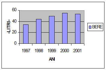 Analizand datele de mai sus se constata ca anual consumul mediu de bere a crescut simtitor in perioada 1997-2000 de la 34 l pe locuitor la 55 l pe locuitor, acest lucru datorandu-se in mare parte diversificarii ofertei, precum si a faptului ca berea este una dintre cele mai accesibile bauturi existente pe piata in acest moment, insa in anul 2001 se constata o scadere usoara a consumului mediu anual de bere, acest lucru fiind cauza vremii nefavorabile pe perioada verii anului 2001.