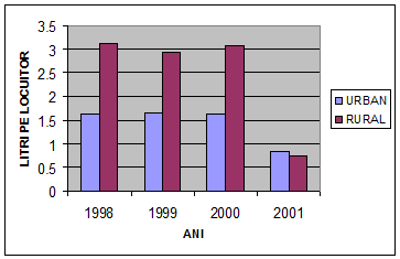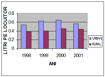 Pentru a avea o imagine cat mai clara in ceea ce priveste evolutia consumului mediu lunar pe o persoana de bere pe mediii de locuit trebuie evidentiat urmatorul grafic.