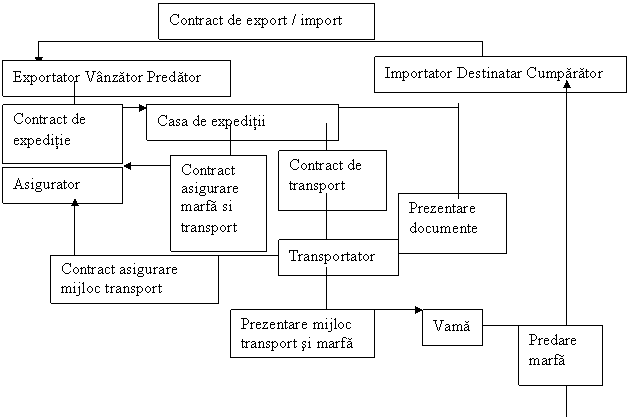 Contractele care se deruleaza pentru a sprijini schimbul international de marfuri sunt prezentate in urmatoarea schema: