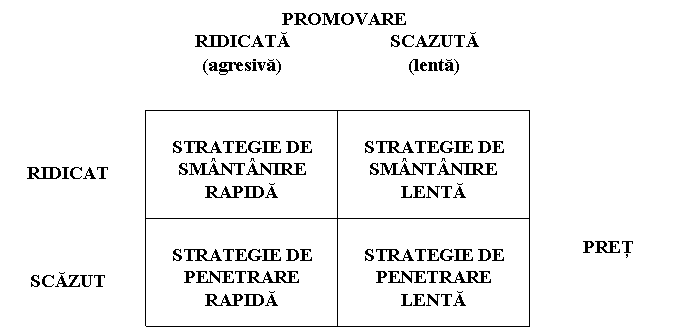 Atat in ceea ce priveste politica de "smantanire a pietei" cat si cea de penetrare exista doua variante: una lenta si una rapida, conform figurii de mai jos.