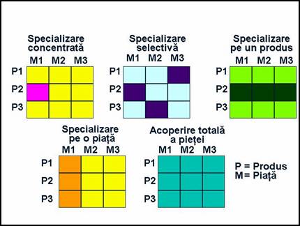 specializare pe o piata: intreprinderea va produce/ comercializa intreaga gama de produse destinata unui singur segment;