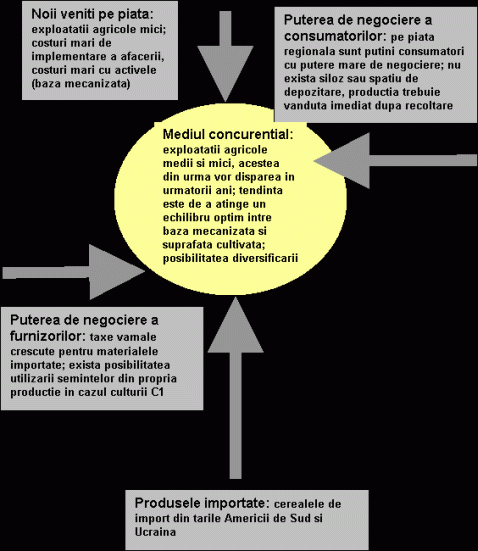Daca in primul caz se poate vorbi de o concurenta efectiva datorita in principal existentei unei baze tehnice de masini si utilaje precum si a unor suprafete mari in administrare, in cel de-al doilea caz concurenta este slaba si reprezinta un procent nesemnificativ cu atat mai mult cu cat orientarea acestui segment se face catre productiile destinate comercializarii in pietele din aglomerarile urbane si consumului propriu.