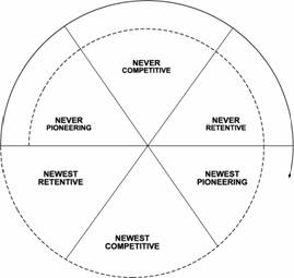 Orice produs trece prin trei stadii, parcurgand asa numitul ciclu de viata al produsului, stadiul de pionierat, stadiul competitiv si stadiul de retentie.