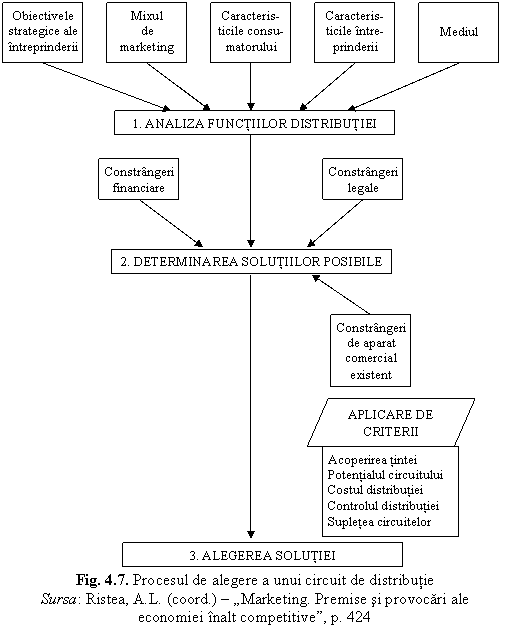 Examinati fig. 7. Procesul de alegere a unui circuit de distributie si explicati in ce ar consta cele trei tipuri de constrangeri care determina solutiile posibile de circuite de distributie.