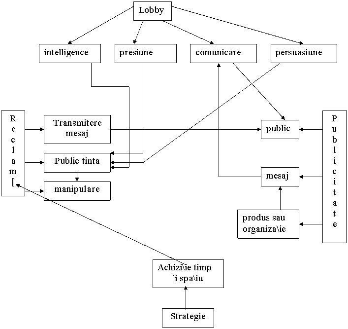 Schematic relatia dintre relatii publice, lobby,reclama si publicitate se poate transpune astfel: