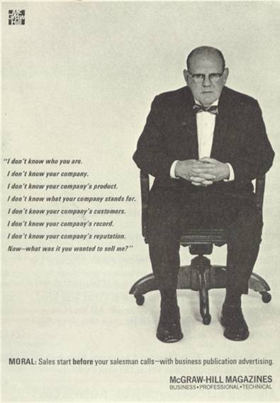 Exista o reclama celebra, foarte graitoare din punct de vedere al relationarii dintre publicitate si relatii publice. Vezi fig.1. Ea a fost publicata in McGraw-Hill Magazines si are urmatoarea morala: