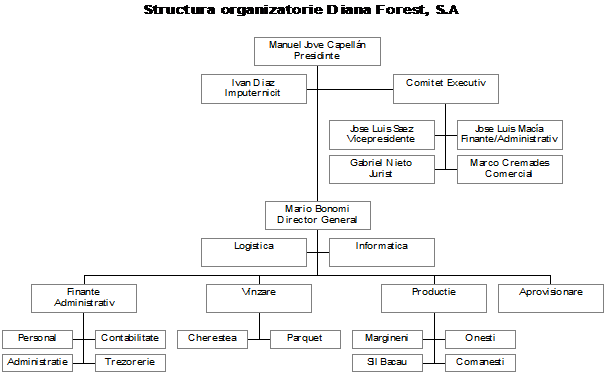 Pe de alta parte, Structura Organizatorica a Societatii Diana Forest S.A. este alcatuita din urmatoarele organe si departamente: