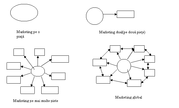 1.Marketing international in sens clasic:firmele si-au insusit pe deplin conceptia de mk si se implica puternic si complet in activitati specifice acestuia pe pietele internationale.Asemeneea firme caute piete individuale in intreaga lume, le cerceteaza sistematic si pun la punct politici si mixuri de marketing cu care sa satisfaca necesitatile si exigentele.Fiecare decizie este orientata in fucntie de piata externa aleasa, iar metodele folosite urmaresc rezolvarea problemelor specifice piata cu piata, numarul pietelor crescand.