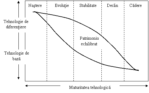 Un sistem complet al "managementului resurselor tehnologice", poate fi inventariat asemanator prezentarii din figura 2, in care termenii "tehnologie de diferentiere" si "tehnologie de baza" se definesc prin numarul mic sau mare de intreprinderi care au adoptat tehnologiile respective.