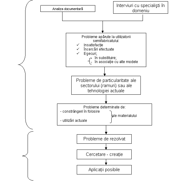 Un asemenea plan este abordat in maniera specifica studiului aplicativ in mediul industrial. Problematica de rezolvat deriva din analiza preliminara si din interviurile acordate de expertii in domeniu. Prima idee retinuta in cadrul acestui demers, a fost aceea a precizarii, in primul rand, a materiei prime din care este produs semifabricatul si, in acest context, a insatisfactiilor in utilizarea lui, precum si, a relevarii procedurilor la care au apelat acesti utilizatori pentru ameliorarea tehnica a semifabricatului si adaptarea la necesitatile lor.