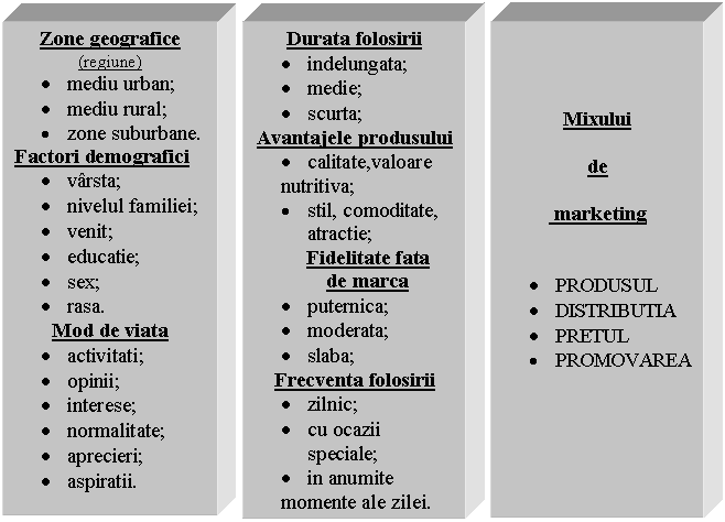 Numai firmele mari si foarte mari isi permit sa atace piata consumatorilor in totalitatea ei, cu produse specifice fiecarui segment.