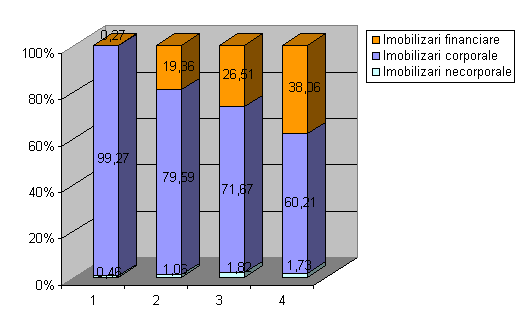 activele imobilizate au inregistrat o evolutie crescatoare. Astfel dupa ce in anul in anul 2001 scazusera cu 9,92 % fata de 2000, in anul 2003 acestea au inregistrat o crestere semnificativa de 199,32 % fata de anul de baza.