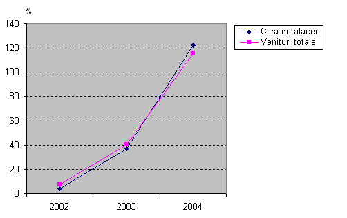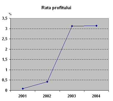 o tendinta de crestere inregistreaza profitul care in 2004 ajungea sa fie de 36,91 de ori mai mare decat in 2000, dar acest lucru dupa ce in 2001 nu a existat si dupa eforturi financiare deosebite ale societatii in vederea imbunatatirii imaginii de marca a firmei si obtinerea unor preturi competitive.
