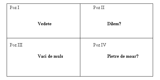 Desigur, existǎ previziuni, planificǎri, strategii care se construiesc pe baza acestui model. Se doreste transformarea stelelor in vaci de muls, eliminarea cainilor, transformarea dilemelor, etc etc.