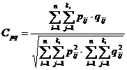 Coeficientul de corelatie tipologica intre doua chestionare p si q este:
