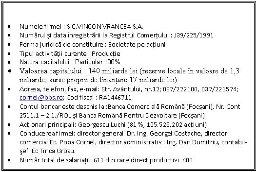 1. Prezentarea S.C. VINCON VRANCEA S.A.
