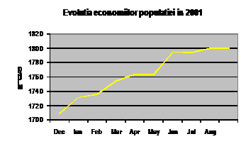Economiile populatiei se ridicau, la sfarsitul lunii august 2001, la 54.030 miliarde lei, ceea ce reprezenta 1.798,3 milioane $.