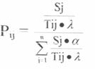 Numarul probabil de consumatori (Nij) care locuiesc la un punct dat 'i', un cartier, localitate satelita etc, care isi vor efectua cumparaturile la un anumit centru comercial 'j', se determina cu relatia: