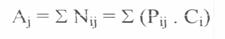 Avand in vedere existenta unor trepte diferite de intensitate a cererii pentru marfurile oferite de centrul comercial, aria de atractie a cumparatorilor, sau numarul total de cumparatori pentru diferitele categorii de marfuri ale centrului comercial 'j' se calculeaza cu relatia: