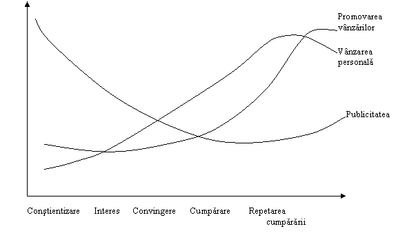Reclama si relatiile publice sunt mai eficiente decat promovarea vanzarilor si forta de vanzare in etapa de lansare. Promovarea vanzarilor favorizeaza incercarea produsului, in timp ce forta de vanzare permite asigurarea prezentarii marcii in reteaua de distributie.