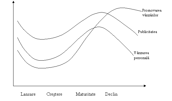 Pe langa aceasta, eficienta utilizarii diferitelor instrumente promotionale mai este influentata si de etapa in care se afla produsul pe curba ciclului sau de viata (Figura 5.3).