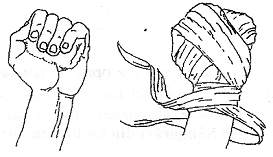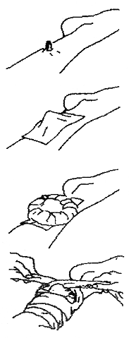 Fig.29. Primul ajutor pentru o plaga transversala a mainii. |