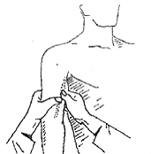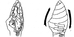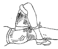in nod se introduce un bat sau un creion si se rasuceste la 1800 pentru cresterea compresiunii circulare; capatul rasturnat in jos al batului se fixeaza cu un al doilea lat de panza.