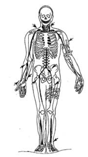 Fig. 32. Principalele puncte de compresiune a vaselor pentru hemostaza de scurta durata