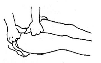 daca hemoragia este mai jos de genunchi, se comprima artera care trece prin gropita dinapoia genunchiului (spatiul popliteu);